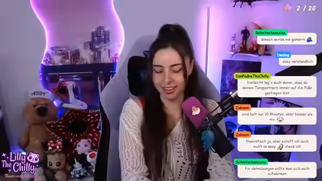 00:16:51Die Nervosität nimmt weiter zu, insbesondere weil Lilly sich zwei sehr persönliche und unangenehme Wahrheiten hat einfallen lassen müssen, die sie noch nie jemandem erzählt hat. Diese betreffen peinliche Themen und Beziehungen. Sie fühlt sich von ihrer Freundin Sonja unter Druck gesetzt, diese Dinge preiszugeben und macht sich Sorgen, dass die Community Seiten von ihr sehen wird, die sie noch nie zu Gesicht bekommen sollte. Lilly fühlt sich hinters Licht geführt und hat Angst, sich im Stream blamieren zu müssen.