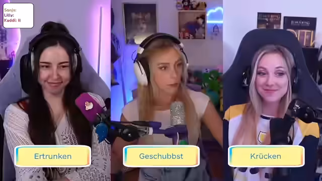 00:33:12Nach dem Essen schaut sich Lilly mit der Community die Top 10 der Jugendwörter des Jahres 2025 an. Sie zeigt sich mit den meisten Begriffen nicht vertraut und erkennt, dass sich viele davon aus der Twitch-Streamer-Szene verbreitet haben. Gemeinsam wird versucht, die Bedeutung von Wörtern wie "low-key", "checkst du", "tough", "gunen", "saibau" und "schere" zu ergründen. Einige Begriffe wie "gunen" für eine suchtähnliche Handlung und "schere" als digitale Fehlergeste werden als bedenklich oder unnötig eingestuft.