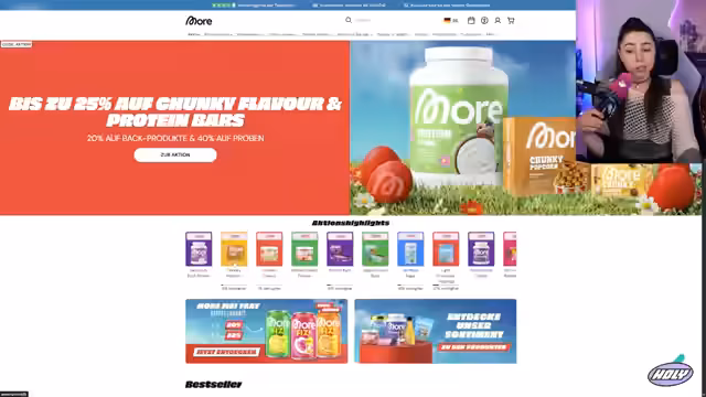 02:48:51Die Stimmung bleibt humorvoll, als über den Wunsch eines Hot Tub Streams gesprochen wird, der jedoch in einer unkonventionellen Form stattfinden würde. Anschließend wird ein Clip mit dem Rocket Beans Klassiker gezeigt und kommentiert. Ein größerer Teil des Streams ist der Promotion des Partners More Nutrition gewidmet, wo auf aktuelle Osterangebote und neue Produkte wie Chunky Popcorn und Fizzy Getränke hingewiesen wird. Die Partnerschaft wird als vorübergehend für den aktuellen Monat dargestellt und der Aufruf, die Angebote zu nutzen, wird wiederholt.