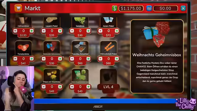 04:00:21Franzi und Lilly nutzen den Abend, um ihren Laden aufzuwerten und neue Zutaten zu bestellen. Sie kaufen einen Weichkäse und geschnittenen Salat, um den Arbeitsaufwand in der Küche zu reduzieren. Zudem wird ein neuer Spieß für das Fleisch benötigt. Das Ziel ist es, das Angebot zu erweitern und die Effizienz zu steigern, auch wenn der dadurch entstehende zusätzliche Stress thematisiert wird.