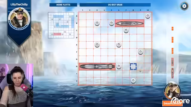 04:33:52Franzi und Lilly beginnen ein Schiffe-versenken-Duell, bei dem sie versuchen, ihre Schiffe strategisch zu platzieren und gegnerische Schiffe zu finden. Das Spiel wird als nervenaufreibend und spannend beschrieben, da beide Spieler nach der gleichen Logik suchen und der Zufall eine große Rolle spielt. Der Chat interaktiv mit und versucht, den Streamer mit Taktik-Tipps zu unterstützen, was jedoch zu widersprüchlichen Ratschlägen führt.