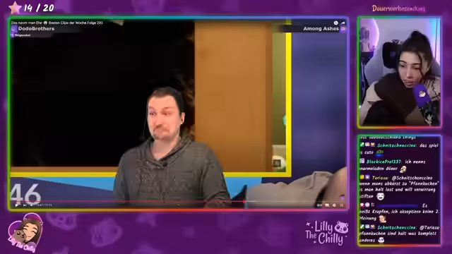 01:14:54Es werden humorvolle Momente im Stream hervorgehoben, darunter die Reaktion auf ein Bild des Vaters einer Freundin mit Paprika, die wie Brüste aussehen. Die Streamerin verweigert sich der Tradition, sich zum Jubiläum einen Kuchen ins Gesicht zu reiben. Es wird über die Blumenvase als Mikrofonersatz gesprochen und die Vorliebe für die Schweinsmaske einer anderen Streamerin. Die Streamerin reagiert auf Kommentare im Chat, wie z.B. die Verwechslung von Jappen und Marlenia-Klatschen. Es wird über die Definition von Pfannkuchen diskutiert und die unterschiedlichen regionalen Bezeichnungen. Die Streamerin teilt Anekdoten über den Verlust einer legendären Waffe im Spiel und die Reaktion der Katze darauf. Es wird über die Zubereitung von Berlinern diskutiert und die unterschiedlichen Meinungen darüber, wie man sie nennt. Die Streamerin betont, dass sie nackt sei, aber alles gut sei. Es wird über die Schwierigkeit der Kommunikation in Bäckereien gesprochen und die Vorliebe für Sprudelwasser.