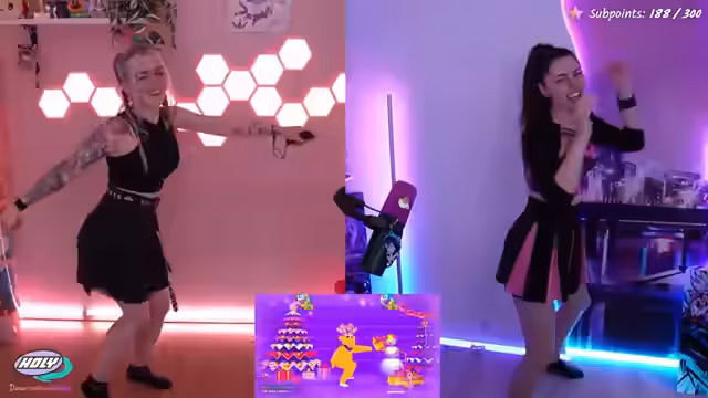 03:50:15Die Streamerinnen beginnen, verschiedene Songs aus Just Dance 2025 auszuprobieren, wobei sie sich auf humorvolle und klanglich ansprechende Titel konzentrieren. Lillythechilly bemerkt, dass einige beliebte alte Songs wie 'Cotton Eye Joe' nicht mehr verfügbar sind. Während des Tanzens kommt es zu leichten Synchronisationsproblemen, die sie aber nicht vom Spaß abhalten. Sie legen Wert darauf, dass der Körpereinsatz und der Spaß im Vordergrund stehen, anstatt nur auf die Punktzahl zu schauen.
