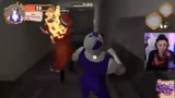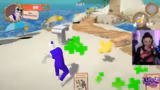 01:01:35Die interaktive Dynamik der 'Gang Beasts'-Runde wird fortgesetzt. Die Streamerin findet sich in der Rolle eines betrunkenen Charakters wieder, der kaum kontrollieren kann, was er tut. Sie berichtet von Versuchen, andere Spieler 'anzufangen' oder mit einer Waffe anzugreifen, was oft in eigenen Verletzungen oder chaotischen Situationen endet. Die Kommunikation mit den Mitspielern, insbesondere mit Klaus und JenNyan, ist geprägt von Ausrufen wie 'Au, au, au!' und humorvollen Beschreibungen des Geschehens. Die Session endet damit, dass JenNyan als Siegerin hervorgeht, während die Streamerin für ihre unkoordinierten Aktionen gelacht wird.