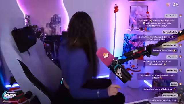 00:21:51Die Streamerin präsentiert ein humorvolles 'Lilly-Freunde-Diagramm', das Sonja, Kim, Juli, Matteo und Lilly umfasst, und erklärt die Beziehungen untereinander, wobei Matteo als einziger Juli 'Juli' nennen darf. Sie korrigiert scherzhaft einen Kommentar, der Kaddi vermisst, und betont, dass Kaddi ihr gehört. Sie plant, Kaddi in die Mitte des Diagramms zu zeichnen. Anschließend öffnet sie Türchen ihres Kuchen-Adventskalenders und des Holy-Adventskalenders, wobei sie verschiedene Geschmacksrichtungen und Produkte entdeckt. Sie kritisiert die Überflutung mit Adventskalendern von Influencern, betont aber, dass sie Adventskalender an sich süß findet, da sie eine tägliche kleine Überraschung bieten. Für nächstes Jahr plant sie ein IRL-Projekt: einen Skiurlaub mit Sonja und Minus 11, der auch gestreamt werden soll. Im Februar ist ein weiterer Skiurlaub mit Jenny geplant, bei dem sie eventuell auch streamen möchte, wofür sie über die Anschaffung einer DJI GoPro nachdenkt.