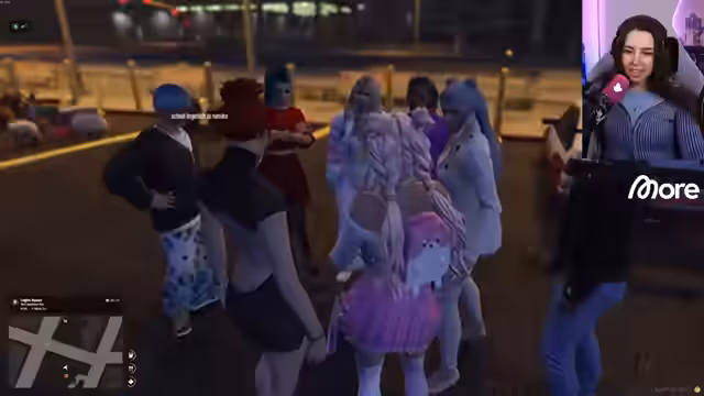 05:08:24Nach einigen technischen Schwierigkeiten beim Einloggen in das GTA RP, gelingt es der Streamerin, als Daisy in die Spielwelt einzusteigen. Sie trifft sofort auf einen anderen Spieler, Kai, und bietet ihm an, ihn mit ihrem Motorrad zum UwU-Café zu fahren. Während der Fahrt werden sie von einem Raser überholt und von der Polizei verfolgt. Im Café angekommen, geht Daisy auf Nami zu, die dort arbeitet, und unterhält sich mit ihr.