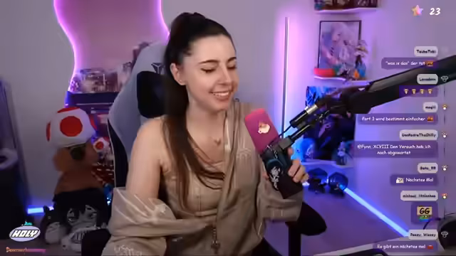 03:20:52Die Streamerin begrüßt ihre Zuschauer und kündigt eine Vielzahl von tollen Spielen für den Stream an. Dabei erwähnt sie ihren neuen Tefal-Grill und wie sie sich dabei verbrannt hat. Eine weitere persönliche Anmerkung bezieht sich auf ihre vorübergehend in Pappe konstruierte Küche, da sie neu eingezogen ist. Einer ihrer Gäste, Johnsy, wird ebenfalls kurz begrüßt. Der Übergang zu den offiziellen Aktivitäten des Abends wird eingeleitet.