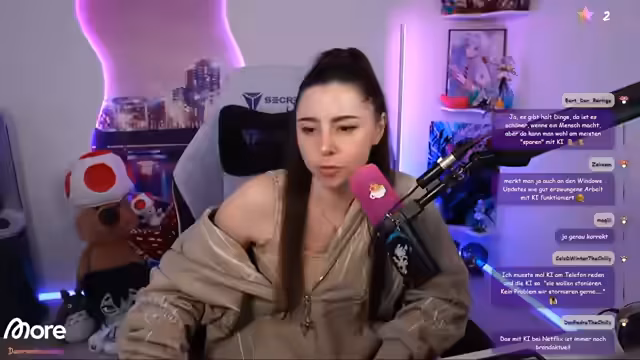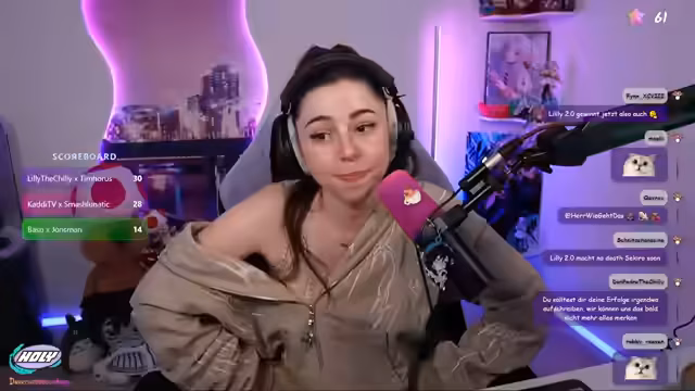 01:08:31Die Streamerin nutzt die Gelegenheit, Kaddi im Chat auf deren offenbar ängstliche Art beim Thema Telefonate anzusprechen. Sie bekennt, dass sie sich selbst verändert hat und in ihrer "Lilly 2.0"-Phase mehr Dinge ausprobieren und auch selbst anrufen würde. Sie spricht über die Vor- und Nachteile von Solo-IRL-Streams im Vergleich zu gemeinsamen und beschreibt das Gefühl des Streamens im eigenen Saarland als komisch. Berlin wird als chilligerer Ort für Solo-Streams wahrgenommen.