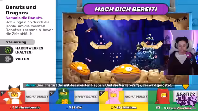 03:08:33Lilly bereitet die LEGO-Party mit @smashlunatic, @divi und @kdrkitten vor. Es gibt Diskussionen über Controller, Steam-Einladungen und Spielmodi. Trotz technischer Probleme mit der Steam-Lobby und Controller-Verbindungen startet die Party schließlich. Die Gruppe entscheidet sich für den Herausforderungsmodus und tauscht sich über Minispiele aus, während sie auf andere Mitspieler wartet.