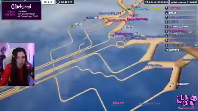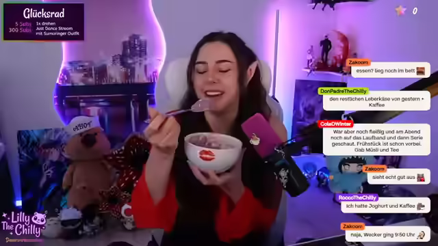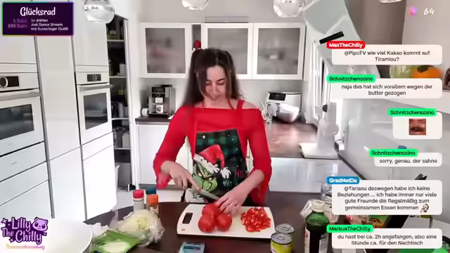 lillythechilly startet mit Plänen für einen Koch-Stream und Murmelspielen. Das Glücksrad bringt Überraschungen, von Merch bis zu sauren Geschmacksexperimenten. In den Murmelspiel-Runden kämpfen die Teilnehmer um den Sieg, während die Moderatorin das Geschehen kommentiert. Später werden Tacos und Tiramisu zubereitet, wobei es in der Küche hoch hergeht. Der Abend endet mit Verlosungen und einer Ankündigung für den nächsten Tag.