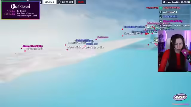 00:39:11Es wird überlegt, ob vor dem Kochen Murmel gespielt werden soll. Es werden verschiedene Maps für das Murmelspiel ausgewählt, darunter eine Chemielabor-Map und eine Weltraum-Map. Die Zuschauer werden aufgefordert, mit dem Befehl "!play" im Chat mitzuspielen. Es wird kommentiert, dass nach dem Start von Marbles on Stream die "Schwitzer" in die Lobby kommen. Es wird angekündigt, dass der Letzte im Spiel ein Timeout erhält. Die ersten Runden des Murmelspiels beginnen, wobei die Kommentatorin das Geschehen aufmerksam verfolgt und kommentiert. Es gibt hitzige Rennen und überraschende Wendungen, bei denen Murmeln herunterfallen und ausscheiden. Es wird überlegt, ob jemand wegen eines Timeouts nicht mitmachen kann. Die Kommentatorin erklärt, dass derjenige, der als Letzter rausfliegt, auch der Letzte ist. Es wird diskutiert, ob es eine Konsequenz geben soll, wenn man als Letzter rausfliegt, aber entschieden, dass man trotzdem noch mitspielen können soll.