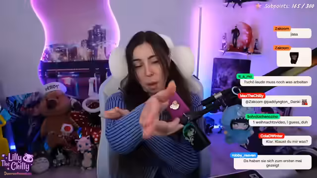 00:50:00Lillythechilly äußert sich zu einem sensiblen Thema: Etikette beim Streamen und Zuschauen. Sie kritisiert es, wenn Zuschauer in ihrem Chat erwähnen, dass sie zu anderen Streamern wechseln oder diese gegenüber ihrer eigenen Streamerin bevorzugen. Sie erklärt, dass es verletzend sein kann, wenn man sagt, einem gefalle der Content nicht, da dies die Mühe und Gedanken zunichtemacht, die man in die Content-Erstellung investiert hat. Sie betont die Wichtigkeit von respektvoller Kommunikation und gibt zu verstehen, dass jeder seinen eigenen Stil hat und nicht für jeden passen wird.