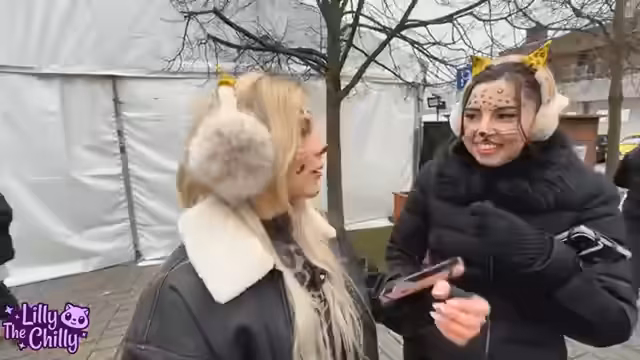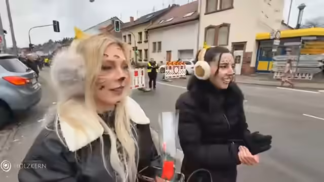 02:34:53Am Ziel angekommen, sind die beiden zunächst unsicher über die genaue Lage des Umzugs. Sie orientieren sich an der Menge der Menschen und folgen der Menge zu Fuß. Die Stimmung ist enthusiastisch, aber auch leicht desorientiert. Die Streamerin berichtet über die frische Kälte und ihr fehlendes warmes Zubehör. Sie suchen die Menschenmasse und den Umzugszug, der noch nicht bei ihnen angekommen ist, und diskutieren über verschiedene Süßigkeiten, die sie als Kinder bei Umzugen erhalten haben.