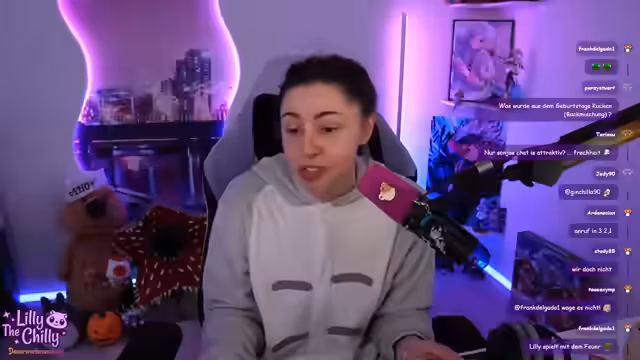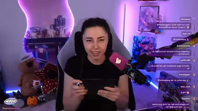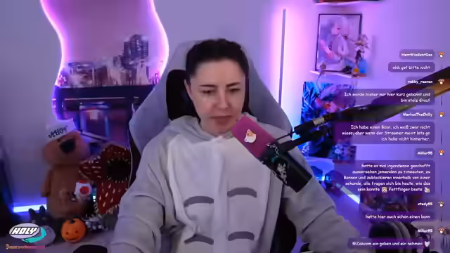 00:51:11Die Streamerin drückt ihre Frustration über die anhaltenden Technikprobleme aus, die viele ihrer Content-Ideen blockieren, da sie oft nicht weiß, wie sie diese technisch umsetzen soll. Trotz des Knackens im Sound, das von einigen Zuschauern als nicht so schlimm empfunden wird, betont sie, dass es ununterbrochen knackt und sie sich wünscht, dass es behoben wird. Sie freut sich jedoch, dass die Zuschauer sie auch so gerne ansehen. Sie bemerkt das plötzliche Auftauchen von Sonjas Chat im Stream, was sie humorvoll als 'Raid' bezeichnet und mit Sonja-typischen Sprüchen kommentiert. Sie flirtet spielerisch mit beiden Chats und betont, dass ihr eigener Chat immer der attraktivste ist, auch wenn sie es nicht immer explizit erwähnt. Sie reflektiert auch über die Bedeutung von Stream-Titeln und wie sie früher viel Zeit in deren Gestaltung investierte, bevor sie feststellte, dass viele Zuschauer sie nicht lesen.