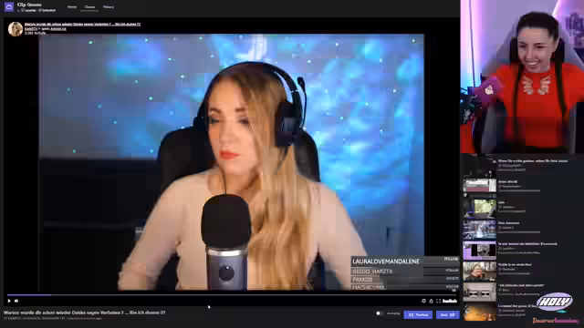 02:08:52Ein humorvoller Clip über ein Haar im Po wird gezeigt, der für allgemeine Belustigung sorgt. Die Streamerin scherzt über die Situation und das Gefühl, das viele kennen. Es wird jedoch festgestellt, dass dieser Clip nicht wirklich aus der Vergangenheit stammt, sondern nur 28 Tage alt ist, was zu einer humorvollen Rüge an den Einsender führt. Es folgt ein Clip, der vier Jahre alt ist und die Streamerin daran erinnert, dass sie zu dieser Zeit gerade erst mit dem Streamen begonnen hatte und Twitch selbst noch nicht konsumierte. Ein weiterer Clip zeigt eine unangenehme Situation, in der jemand ungefragt Bilder von einer Streamerin macht. Die Streamerin betont, wie schwierig es in solchen Momenten ist, spontan zu reagieren. Es werden weitere Clips gezeigt, die die Veränderungen von Streamern wie Leon über die Jahre hinweg beleuchten, wobei Haare und Bart als entscheidende Faktoren für das Aussehen hervorgehoben werden. Die Streamerin kommentiert die Galaxy-Leggings, die früher im Trend lagen, und die Stilveränderungen der Streamer im Laufe der Zeit. Sie schließt mit der Feststellung, dass das Wichtigste ist, sich selbst zu gefallen, unabhängig von den Meinungen anderer.