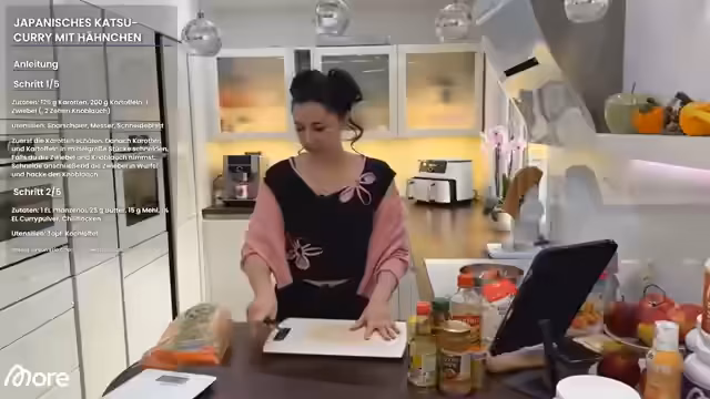 Es wurde ein japanisches Curry zubereitet. dabei kam es zu chaotischen Momenten in der küche. der fokus lag auf der nahrung und persönlichen reflektionen über das kochen. abschließend wurde das ergebnis präsentiert und der arbeitsplatz aufgeräumt.
