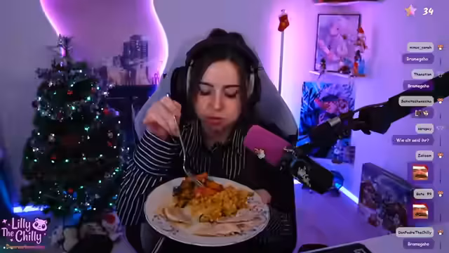 02:39:52Die Streamerin widmet sich weiterhin der Weihnachtsdekoration, indem sie einer weiteren Figur eine große Weihnachtsmütze und einen Schal anzieht, um sicherzustellen, dass es ihr nicht kalt wird. Sie äußert sich zufrieden mit dem bisherigen Ergebnis und überlegt, den Rest der Dekoration später zu erledigen. Parallel dazu bereitet sie ihr Abendessen vor, das aus Reis mit Gemüse und Hähnchen besteht, genauer gesagt mit Kürbis, Zucchini und Brokkoli. Sie bedankt sich bei den Zuschauern für die Unterstützung und teilt ihre Freude am Weihnachtsfest, auch wenn sie sich selbst als Grinch bezeichnet, wenn es um ihre Familie geht. Die Streamerin betont, dass Weihnachten viele schöne Aspekte hat, die man genießen kann, und freut sich, wenn sie diese Freude mit ihrer Community teilen kann. Sie erwähnt auch, dass ihre Mutter das Essen zubereitet hat.