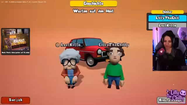 03:04:53Die Streamerin und Lostkittn starten das Spiel 'Backseat Drivers' über die Stream Together-Funktion, nachdem sie die potenziellen Bugs besprochen haben. Es kommt zu technischen Problemen mit dem Audio, da Lostkittn die Stimme der Streamerin in der Vergangenheit hört, was zu Verwirrung und humorvollen Momenten führt. Sie versuchen, die Audioeinstellungen im Spiel anzupassen, um das Problem zu beheben. Die Streamerin beschreibt sich selbst als 'Oma', die nichts sieht und Anweisungen von Lostkittn benötigt. Sie schlüpfen in ihre Rollen und beginnen das Spiel, wobei sie sich weiterhin gegenseitig necken und über ihre Fahrkünste scherzen. Die Streamerin erwähnt, dass sie einen Führerschein besitzt, aber Lostkittn zweifelt an ihren Fähigkeiten im Spiel. Sie stoßen auf erste Herausforderungen im Spiel, wie das Lenken und Bremsen, und müssen sich an die ungewohnte Steuerung gewöhnen.