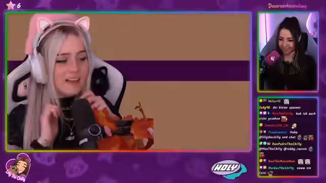 02:48:47Die Streamerin ruft Lostkittn an, um den gemeinsamen Stream vorzubereiten. Lostkittn ist überrascht, da sie Discord nicht auf ihrem PC geöffnet hatte und der Anruf stattdessen auf ihrem Handy einging, was sie kurz in Panik versetzte. Es folgt ein humorvolles Gespräch, in dem sie sich gegenseitig necken und über banale Dinge sprechen, während die Streamerin ihr Essen zu sich nimmt. Sie sprechen über Lostkittns Bouldern-Erfahrung und die dabei entstandenen Schmerzen und Verletzungen. Das Gespräch nimmt eine absurde Wendung, als sie über das 'Trichtern' sprechen, wobei Lostkittn die Streamerin scherzhaft als 'Trichterbraut' bezeichnet. Die Streamerin enthüllt, dass sie ADHS hat, was jedoch nichts mit der Art ihrer Gespräche zu tun hat, wie Lostkittn feststellt. Sie bereiten sich auf das Spiel 'Backseat Drivers' vor, bei dem einer fährt und der andere Anweisungen gibt. Sie besprechen die Spielmechaniken und die Möglichkeit, die Stream Together-Funktion von Twitch zu nutzen, trotz bekannter Bugs.