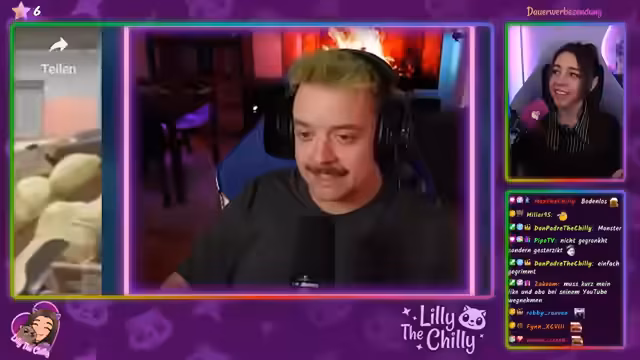 00:22:38Es wird ein Clip von Jen gezeigt, in dem sie jemanden beißt. Lilly erklärt, dass Jen dies aus 'cute aggression' tut, wenn sie jemanden sehr mag oder liebt. Dies führt zu einer Diskussion im Chat, ob man auch von Jen gebissen werden möchte, solange es nicht wehtut. Ein Waschbär-Magnet am Kühlschrank wird thematisiert, und Lilly fragt, ob dies ein neuer Trend sei. Sie scherzt darüber, ihre Emotes von Quarkas zu Waschbären zu wechseln, betont aber ihre Zufriedenheit mit den aktuellen Emotes. Es wird auch über Jens Fähigkeit spekuliert, Finger oder Ohren abzubeißen, was Lilly als 'crazy' und 'krank' bezeichnet. Sie vergleicht Jen und Sonja als Kinder, die beide 'crazy im Kopf und gruselig und gefährlich' gewesen seien.