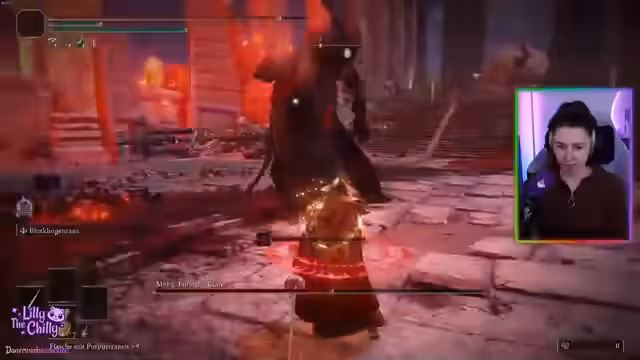 03:19:54Die Streamerin beginnt ihren Kampf gegen einen Boss, Malenia, die Blutende, und hat zunächst erhebliche Schwierigkeiten. Sie ist mit den Angriffen des Bosses überfordert, besonders mit der Fähigkeit, die Blutverlust verursacht. Die Streamerin probiert verschiedene Strategien aus, darunter die Verwendung von Items, aber verliert trotz ihrer Bemühungen mehrere Male ihr Leben. Sie ist frustriert über die vermeintlich unfairen Attacken und die Tatsache, dass der Boss Leben zurückgewinnt. Die Chat-Hilfe unterstützt sie schließlich mit Tipps zu den Mechaniken des Bosskampfs.