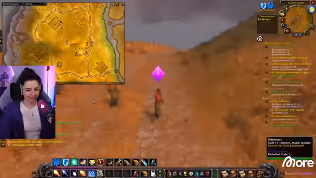 03:16:28Der Stream fließt in alltägliche In-Game-Aktivitäten über, wie das Verkaufen von Gegenständen, Kochen und die Suche nach Taschen bei NPCs wie Felika oder Nagura. Es gibt Diskussionen über Beute, wie Geierfleisch oder Murloc-Flossen, und die Notwendigkeit, Inventarplatz zu schaffen. Der Streamer interagiert mit anderen Spielern über den Chat, fordert Unterstützung an und organisiert Handelsaktivitäten. Dabei entstehen lustige Momente, wie die Verwirrung um korrekte NPCs oder das Ablegen von Quests. Die Atmosphäre bleibt locker, mit beiläufigem Plaudern über Hobbys, Kochen und persönliche Vorlieben.