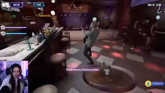 02:08:06Der Stream beginnt mit der Betreibung eines privaten Clubs, wobei ein unumgänglicher Kundenverlust erwähnt wird. Die Streamerin konzentriert sich auf die Aufgaben hinter der Theke, erwähnt, dass Teddy dem Club Einnahmen gebracht hat und eröffnet den Club offiziell für die Gäste. Im Spielverlauf werden die ersten Getränkebestellungen entgegengenommen und混合. Ein erstes Problem zeigt sich, als fälschlicherweise Beliebtheit verloren wird, obwohl scheinbar korrekt abgerechnet wurde. Der erste Abend gestaltet sich als schwach und die Beliebtheit sinkt wieder.