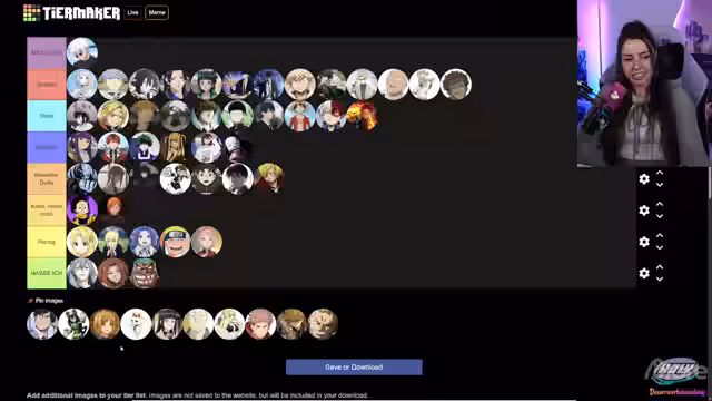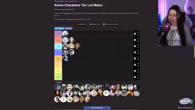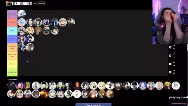 03:31:59Der Streamer startet die Erstellung der Tierliste und bespricht die Kategorien, die später angepasst werden, um Stabilität und Kawaii zu integrieren. Er dankt den Mods für die Vorarbeit und stellt die Charaktere vor, die aus verschiedenen Anime-Serien wie One Piece, Full Metal Alchemist und Jujutsu Kaisen ausgewählt wurden. Die Liste wird im Mod-Channel koordiniert, und der Chat wird um zusätzliche Vorschläge gebeten, um die Auswahl zu erweitern.