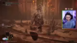 01:59:30Die Streamerin kämpft gegen Godfrey in Elden Ring. Sie verliert viel Leben und gerät in die Ecke. Sie muss kurz heilen. Sie darf nicht an den Rand geraten. Der Boss macht Spaß und die Streamerin bekommt Lust, das Spiel nochmal durchzumachen. Sie war schon bei der Hälfte des Lebens von Godfrey, aber noch nicht in Phase 2. Sie reagiert manchmal gar nicht und das ist dumm. Sie kann nicht mal rollen. Der Kampf zieht sich so lange. Die Streamerin erreicht Phase 2 und der Löwe erwacht. Sie hat nichts mehr. Die Streamerin hat viel zu lernen. Sie hat seinen Angriff falsch gesehen. Sie hat es verkackt.