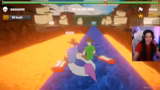00:02:22Nachdem die technischen Schwierigkeiten behoben sind, beginnt das eigentliche Gameplay. Die Streamerin und ihr Team entwickeln eine Strategie, um Hindernisse wie eine Hauswand und Plattformen zu überwinden. Sie müssen präzise Koordinieren, um in der Lobby zu navigieren und sich mit ihren Gegnern zu messen. Das Spiel erfordert schnelle Reflexe und eine genaue Abstimmung zwischen den Teammitgliedern, um erfolgreich zu sein.