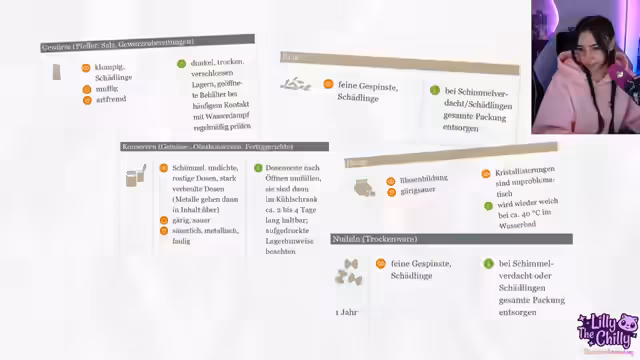 01:21:12Es wird über den Umgang mit abgelaufener Schokolade gesprochen, wobei die Sprecherin berichtet, dass sie schon ein Jahr abgelaufene Schokolade gegessen hat. Sie betont, dass sie bei gekühlten Produkten vorsichtiger ist, aber bei Süßigkeiten das MHD weniger ernst nimmt. Die Frage nach der Haltbarkeit von Ahornsirup wird aufgeworfen, dessen Öffnungsdatum unbekannt ist. Es wird erwähnt, dass sogar Wasser ein MHD hat, hauptsächlich wegen der Verpackung. Die Sprecherin erklärt, dass das MHD oft aus Haftungsgründen angegeben wird und man sich auf Geruch, Aussehen und Geschmack verlassen sollte. Sie erzählt eine Anekdote, wie ihre Mutter und sie einen Fisch nicht gegessen haben, obwohl er noch haltbar sein sollte, weil er komisch roch und schmeckte. Die Möglichkeit einer unterbrochenen Kühlkette wird als Ursache genannt. Eine PDF-Datei der Tafel Deutschland mit Haltbarkeitstabellen wird in der Videobeschreibung verlinkt. Die Uhrzeit auf Lebensmittelverpackungen gibt nicht das Verfallsdatum an, sondern den Zeitpunkt der Herstellung, um bei Problemen Chargen zurückrufen zu können. Die Sprecherin schließt mit der Feststellung, dass ein MHD kein Verfallsdatum ist und man Lebensmittel nicht sofort wegwerfen sollte, sondern prüfen, ob sie noch genießbar sind. Es wird auch humorvoll erwähnt, dass jemand in einem anderen Stream schlechte Milch getrunken hat.