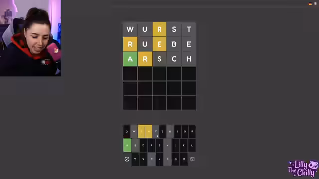 05:05:32 drüber. Oh, ein bisschen laut die Musik an. Hoppala. Tut mir leid. So, wir machen noch ein Wordle. Wo macht man Wordle? Wie heißt denn die Seite, wo man Wordle macht? Wordle des Tages. Was heißt das? Aber ich... Wordle. Wordle. Wordle.