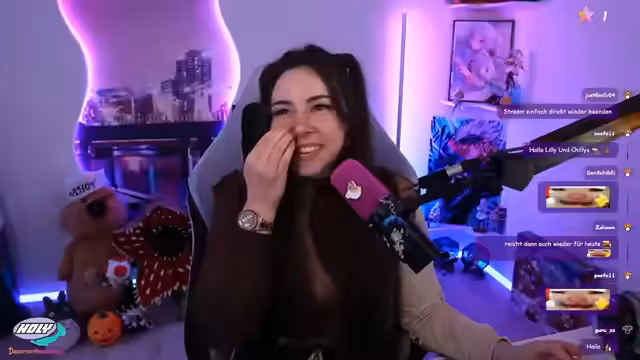 03:16:22Ein Höhepunkt des Streams ist ein gespielter Notfall-Call mit der Freundin Sonja. Lilly täuscht vor, ihren Hamster getreten zu haben und bittet um dringende Hilfe, was zu einem humorvollen, aber intensiven Gesprächsstreit führt. Kurz darauf erhält sie Besuch von French Stallion, den sie als einen der sympathischsten und witzigsten Personen beschreibt, die sie je getroffen hat. Das Gespräch mit ihm ist locker und charmant, und es wird betont, wie wichtig und vertrauensvoll ihre Chat-Community für sie ist.