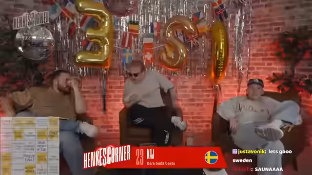 00:21:32Henke und Dominik spielen ein gemeinsames Faktenquiz über die Geschichte des Eurovision Song Contest. Dabei werden drei Fakten vorgelesen, von denen einer wahr und zwei falsch sind. Die Teilnehmer müssen erraten, welche Information korrekt ist. Die Themen reichen von der ersten Siegerin im Jahr 1956 (Schweiz) über die Teilnahme Australiens bis hin zu konkreten Siegern wie ABBA und Céline Dion. Die Runde wird interaktiv gestaltet, da auch der Chat teilnehmen und seine Lösungen eintragen darf. Das Quiz fördert dabei den Wissensdurst und die allgemeine Vorfreude auf den Contest.