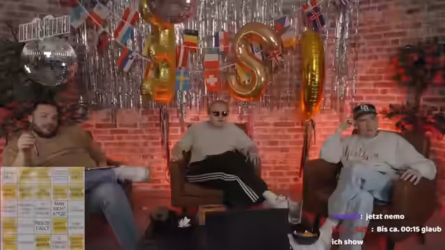 01:54:52Bevor der eigentliche Contest startet, bereiten sich die Streamer auf den Showverlauf vor. Es wird die Idee eines eigenen Bingo-Spiels für die Zuschauer vorgestellt, bei dem humorvolle Meldungen wie 'Schnabeltier', 'WLAN-Lookalike' oder 'Text vergessen' abgehackt werden können. Die Moderations- und Bewertungssysteme werden diskutiert, wobei ein eigenes Bewertungssystem von 0 bis 12, jedoch mit Fokus auf die Punktzahlen 8, 10 und 12, ins Auge gefasst wird. Gleichzeitig gibt es technische Unannehmlichkeiten, da Dominik auf der Toilette ist, und man über die Schärfe des Tons im Gespräch mit dem Chat ist.