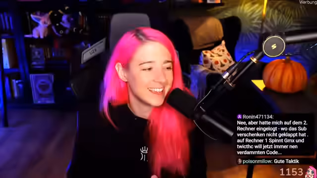 00:15:14Nachdem die Streamerin eine Aufforderung des Chats befolgt hat, sich auf eine Zahl zu konzentrieren, entwickelt sich eine surreal anmutende Diskussion. Der Chat antwortet darauf synchron mit der Zahl '69', was die Streamerin dazu bringt, zu hinterfragen, ob ihre Zuschauer reale Personen oder nur Gedanken in ihrem Kopf sind. Diese These wird durch weitere诡异ere Chat-Einträge gestärkt. Später wird sie von einem 'Raid' von 'Dante' überrascht, was sie in ihrer Verwirrung nur weiter bestärkt. Das Gespräch wird zu einer absurden, tiefgründigen und humorvollen Auseinandersetzung über die Existenz der eigenen Community und das eigene Ich.