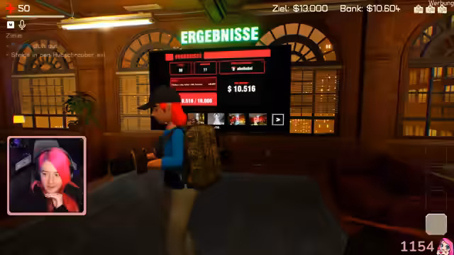 01:01:56Im weiteren Verlauf des Spiels 'Headliners' ist Babsi nun fest im Spiel und partizipiert aktiv. Nach einem besonders unrunden Auftritt diskutieren die Streamerin und Babsi humorvoll über ihr Outfit und den Chat. Die Streamerin nutzt die Gelegenheit, die Existenzfrage, die zuvor den Chat dominierte, auch auf Babsi zu übertragen und fragt sie spielerisch, ob sie echt sei. Der Chat wird in die Diskussion einbezogen, um eine klare Antwort auf die Existenzfrage zu finden. Das Gameplay bleibt im Vordergrund, insbesondere der Versuch, profitable Fotos zu schießen und den avatar zu retten oder Teile seiner Leiche zu bergen.