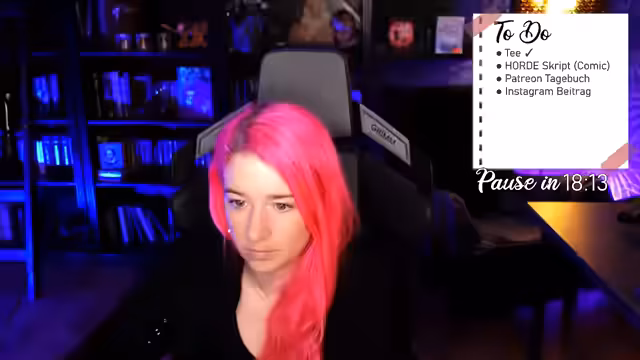 00:16:59Die Streamerin realisiert einen Fehler in ihrem Terminkalender. Ihr Dungeons & Dragons-Spiel beginnt bereits um 18 Uhr, nicht wie angenommen um 19 Uhr. Dies führt dazu, dass das Co-Working heute verkürzt wird, da sie vorher noch eine Bestellung von EMP auspacken und streamen möchte. Sie erzählt von ihrem Wechsel in die Selbstständigkeit vor der Corona-Pandemie, um mehr Homeoffice zu ermöglichen, und teilt ihre gemischten Gefühle dabei, da sie ihren alten Job eigentlich sehr mochte.
