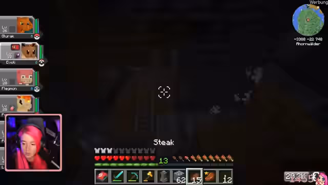 05:14:23Der Stream beginnt mit einer Minecraft-Expedition, bei der nach Rohstoffen gesucht wird. Es wird Eisen- und Kohle-Erz gefunden, um später Pokébälle herzustellen. Ein Spawnpunkt wird gesetzt, um bei einem Todesfall schnell zurückkehren zu können. Die Entdeckung einer Diamantaxse wird erwähnt, da genug Diamant dafür vorhanden ist.