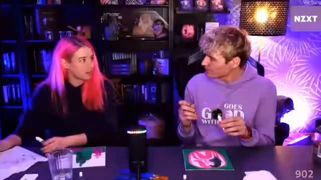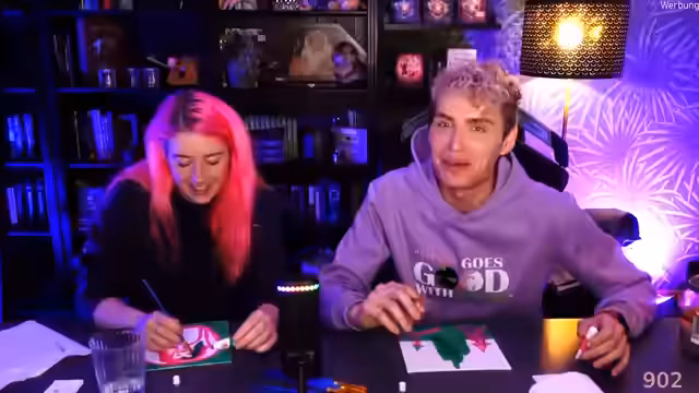 01:42:29Neben der inhaltlichen Diskussion ist der Stream von einer lockeren und kreativen Atmosphäre geprägt. Während eines Malversuchs entsteht eine Reihe von humorvoll als 'künstlerisch' oder 'kindlich' bezeichneten Bildern. Die Streamerinnen unterhalten sich scherzhaft darüber, diese Kunstwerke zu verschenken oder für einen guten Zweck zu versteigern. Diese kreativen Momente und der unbeholfene Umgang mit den Zeichenutensilien dienen als lockere Abwechslung und unterstreichen den ungezwungenen, persönlichen Charakter des Gesprächs.