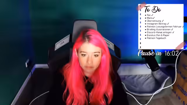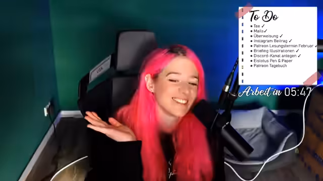 00:32:06Die Streamerin stellt ihre umfangreiche To-Do-Liste für den Tag vor, die hauptsächlich aus administrativen und kreativen Aufgaben besteht. Dazu gehören das Überarbeiten einer Leseprobe, Bearbeiten von E-Mails, Schreiben eines Instagram-Beitrags und Planen eines Lesungstermins. Ein Hauptfokus liegt auf der Vorbereitung für ihr Eislotus-Pen-&-Paper-Projekt, für das sie in dieser Woche das Abenteuer und die Charakterböge fertigstellen möchte. Sie plant, dies mit Hilfe von Pomodoro-Sitzungen zu strukturieren und danach das Spiel Hightail zu spielen.