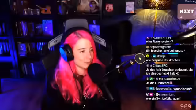 02:28:17Es wird über die Gründe diskutiert, warum Nara besser ankommt als Katzo, wobei ihre frühe Reife und die von der Dorfgemeinschaft auferlegte Perfektion als mögliche Faktoren genannt werden. Die Streamerin äußert ihre Freude darüber, dass die Intention hinter der Figur Nara bei den Lesern angekommen ist. Anschließend wird das Magiesystem im Buch thematisiert, wobei die Inspiration durch japanische und chinesische Schriftzeichen erläutert wird. Die Fußnoten im Buch werden ebenfalls diskutiert, wobei die Streamerin verrät, dass sie den Verlag mit dem Pitch "Avatar The Last Airbender trifft die Tribute von Panem mit Fußnoten" überzeugt hat. Es wird angedeutet, dass die Identität des Erzählers in den Fußnoten im Laufe der Geschichte enthüllt wird. Der Kohlkopfverkäufer aus Avatar wird als Easter Egg im Buch erwähnt und die Streamerin äußert ihre Freude darüber, dass er aufgefallen ist.