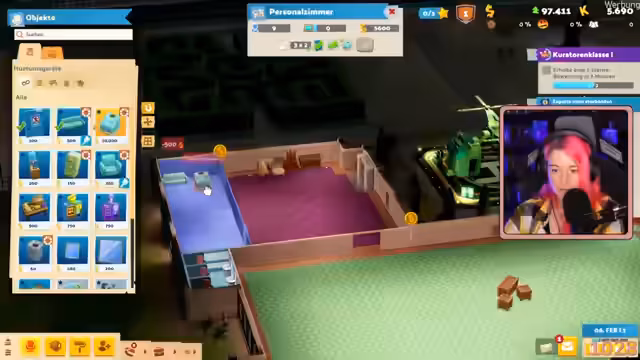 03:20:10Das Hauptziel ist es, eine positive Bewertung vom Kulturministerium zu erhalten, um das Museum weiter ausbauen zu können. Die Streamerin arbeitet daran, die Gastunterhaltung zu steigern, durch den Aufbau von Führungen, die Anschaffung interaktiver Exponate wie des Seance-Simulators und die Optimierung des Museumslayouts. Besonderes Augenmerk wird auf die Verbesserung des Begeisterungsfaktors und die Schaffung ansprechender Ausstellungsflächen gelegt.