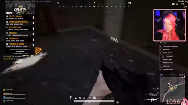 01:15:56Der Stream beginnt mit dem Eintritt in eine neue Lobby. Dabei gibt es technische und taktische Diskussionen über die Ausstattung, insbesondere über die benutzte Tastatur und deren Anpassungen für das Spiel. Streamerin und Teammitglieder diskutieren, dass Page Up und Page Down für das Wechseln der Kameraperspektive beim Zuschauen von toten Teamkollegen unerlässlich sind, da die Tastatur keine eigenen dafür hat. Es folgt eine kleine Pause, bevor es mit der Landauswahl in der neuen Runde weitergeht.