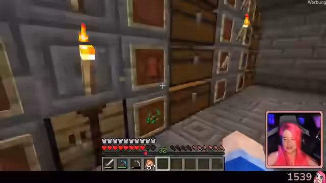 03:47:08Die Streamerin und ihre Begleiter beschließen, in den Nether zu fliegen, um nach einem Baby-Gast zu suchen. Sie müssen die Elytras erst verzaubern und Raketen craften. Im Nether treffen sie auf aggressive Ghasts, die sie mit Bögen bekämpfen. Lucinda hat einen Glückstreffer, als sie einen Ghast-Angriff mit einem Pfeil zurückschlägt und dadurch eine seltene Musikdiske erhält. Schließlich finden sie mehrere Gasts, die sie einsammeln wollen.