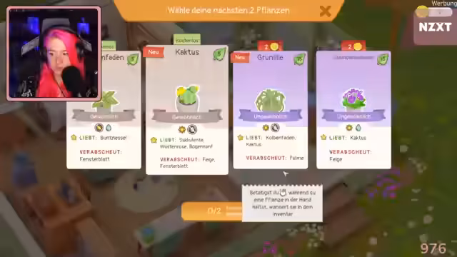 01:34:24Der Stream beginnt mit der Vorstellung von Urban Jungle, einem cozy Game, in dem man verschiedene Pflanzen wie Sukkulenten, Kakteen und Efeututen in einer Wohnung anordnet und pflegt. Das Kernziel besteht darin, den Bedürfnissen der Pflanzen gerecht zu werden, insbesondere was Licht und Wasser angeht. Die Streamerin entdeckt dabei oft Widersprüche: Sukkulenten benötigen Trockenheit, während Pflanzen wie Efeututen Feuchtigkeit mögen. Diese Unterschiede stellen eine wiederkehrende räumliche Herausforderung dar, da die Pflanzen oft nicht in der Nähe platziert werden können, ohne ihre Bedürfnisse zu verletzen, was zu einem humorvollen, aber teils frustrierenden Gameplay führt. Die anfängliche Demo dient als lockere Einführung in das Prinzip des räumlichen Puzzles.