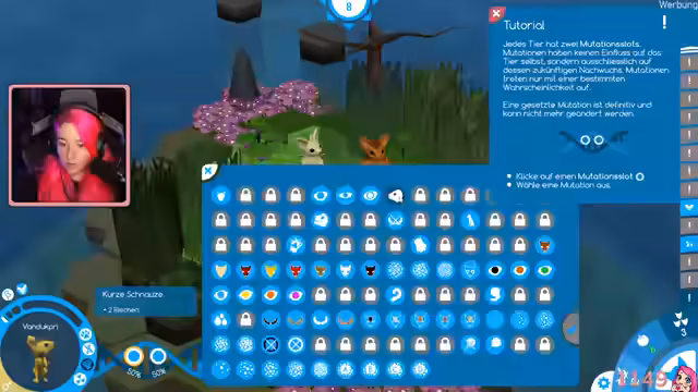 04:06:01Im weiteren Verlauf des Spiels konzentriert sich die Streamerin auf das Überleben ihrer Tiergruppe. Sie sammelt Nahrung, gräbt den Boden um und versucht, Nüsse zu knacken, wobei sie feststellt, dass einige Jungtiere noch zu jung zum Sammeln sind. Die Fortpflanzung spielt eine zentrale Rolle, um den Clan zu erhalten und zu erweitern. Es werden Nistplätze gebaut und Babys geboren, wobei die Streamerin versucht, die Gene der Nachkommen durch Mutationen zu beeinflussen, wie zum Beispiel mit einem mittleren Körpergen für das Baby Nota. Trotz der Bemühungen sterben einige Tiere, was die Dringlichkeit eines Nests und ausreichend Nahrung unterstreicht. Die Suche nach einem sicheren Nest und die kontinuierliche Nahrungsbeschaffung sind entscheidend, um das Aussterben des Clans zu verhindern.