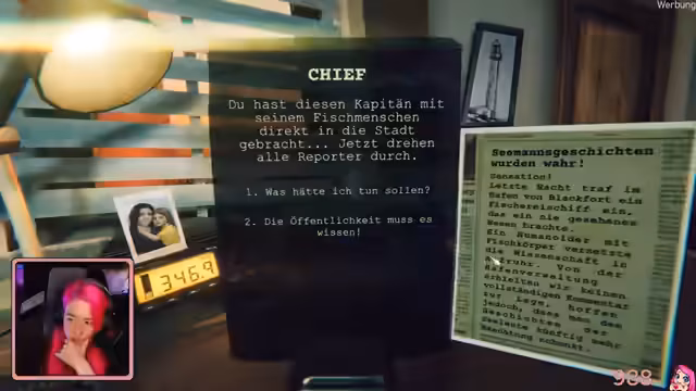 03:23:57Die Streamerin beginnt mit Static Threat, einem Horror-Spiel, in dem sie die Rolle eines Leuchtturmwärters einnimmt. Nachdem sie den Leuchtturm betreten hat, entdeckt sie verschiedene Objekte, darunter einen kaputten Radiosender und eine Antenne. Ihr Ziel ist es, Schiffe auf ihrem Funkgerät zu empfangen und sie sicher in den Hafen zu leiten. Die Atmosphäre des Spiels ist düster und spannungsgeladen, mit der ständigen Präsenz des Unbekannten.
