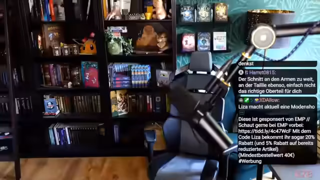 03:10:19Die Streamerin berichtet über ihre langjährige Freude an dem Online-Shop EMP, für den sie nun eine Partnerschaft hat. Sie zeigt begeistert die gelieferte Ware an und beginnt, verschiedene Kleidungsstücke wie Oberteile, Shorts und ein Samtkleid zu präsentieren. Viele Teile werden direkt vor der Kamera angezogen und kommentiert, wobei sie besonders auf Passform und ihre eigenen Vorlieben eingeht. Sie stellt ihre persönliche EMP-Körperform fest und erwähnt, dass sie oft mit Kleidungszwickern zu kämpfen hat, was ihre Stimmung traurig macht und das Einkaufen für sie zu einem Albtraum werden lässt.