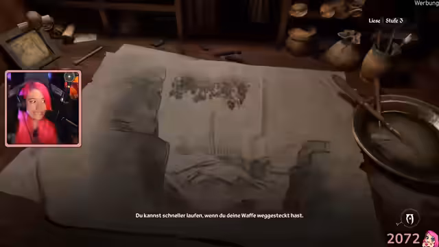 03:51:49Die Figur schläft im Unterschlupf des Feindes und steigt auf Stufe 3 auf. Die verbesserten Fähigkeiten sind Stärke, Tempo und Agilität. Ein Schlüssel wird gefunden und eine Tür in der Kanalisation geöffnet, die zu weiteren Truhen mit Tränken führt. Der Weg wird geöffnet, um von der anderen Seite hineinzukommen. Die Kanalisation erweist sich als verwirrend und die Figur verliert die Orientierung. Es wird festgestellt, dass Band 4 eines Buches fehlt, was zu dem Entschluss führt, es zurückzulassen und später wiederzufinden. Die Figur irrt ziellos umher, was zum Spielerlebnis gehört, aber die Notwendigkeit, den vierten Band wiederzufinden, wird betont. Der Streamer irrt in der Kanalisation umher und findet schließlich den Ausgang, vergisst aber das eigentliche Ziel. Die Suche nach Band 4 wird fortgesetzt, wobei bereits aufgedeckte Kartenteile als Orientierungshilfe dienen.